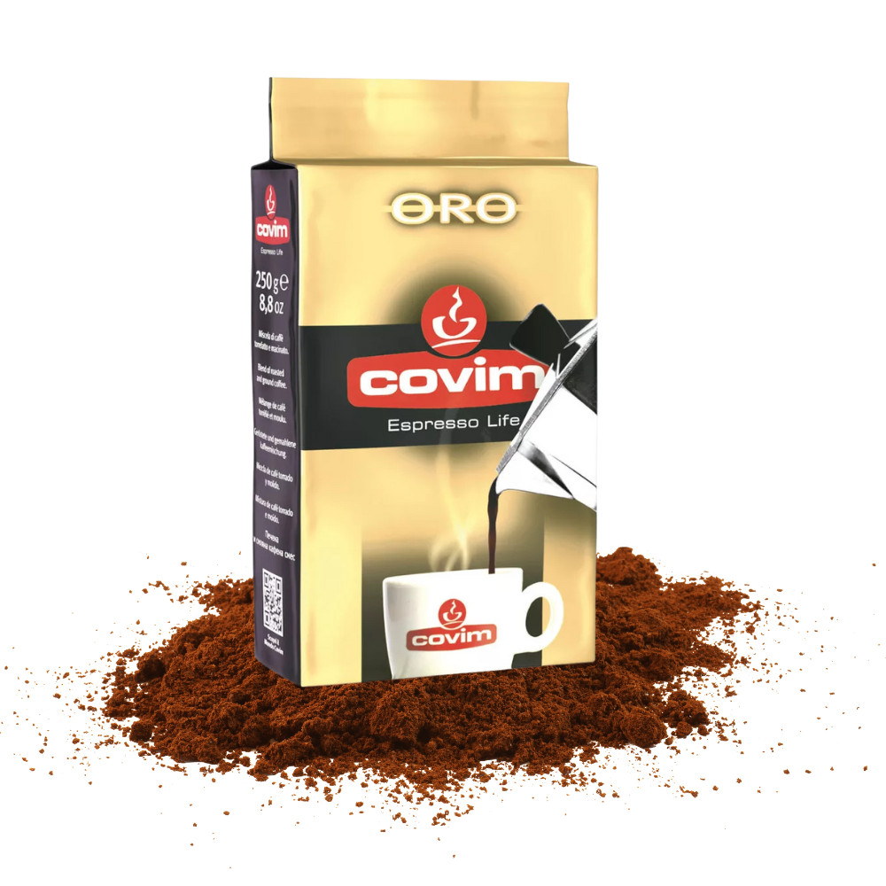 Covim Gold 250 g mletá káva – jemná a vyvážená italská směs. Kombinace arabiky a robusty přináší příjemnou chuť a delikátní aroma. Skvělá pro espresso i moka konvici.