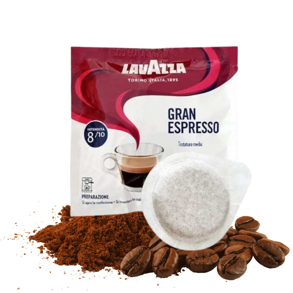 Lavazza Gran Espresso ESE 44 mm kávový pod – silné a plné italské espresso. Směs kvalitních zrn arabiky a robusty nabízí bohaté aroma, nádech čokolády a hustou pěnu. Kompatibilní se všemi ESE kávovary – skvělý pro rána i pauzy.